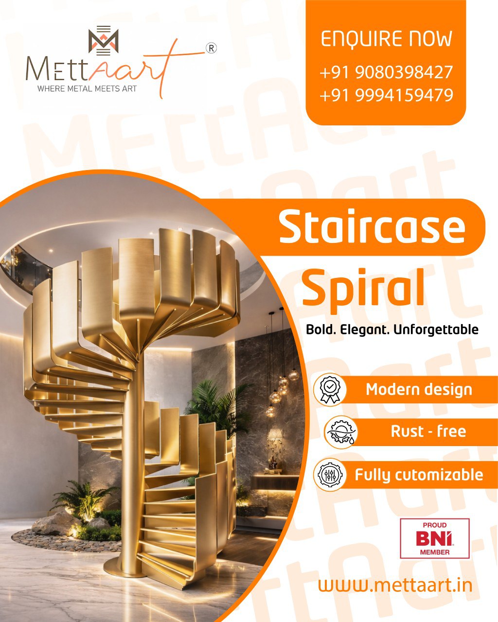 #METTAART #WhereMetalMeetsArt #SpiralStaircase #LuxuryInteriors #ArchitecturalMetal #ModernDesign #StatementStaircase #InteriorInspiration #CoimbatoreDesign #BNIMember #interiorspiralstaircase #SteelStaircaseinCoimbatore #luxurystaircase_design #MetalFabricators #villadesign_modernIndia