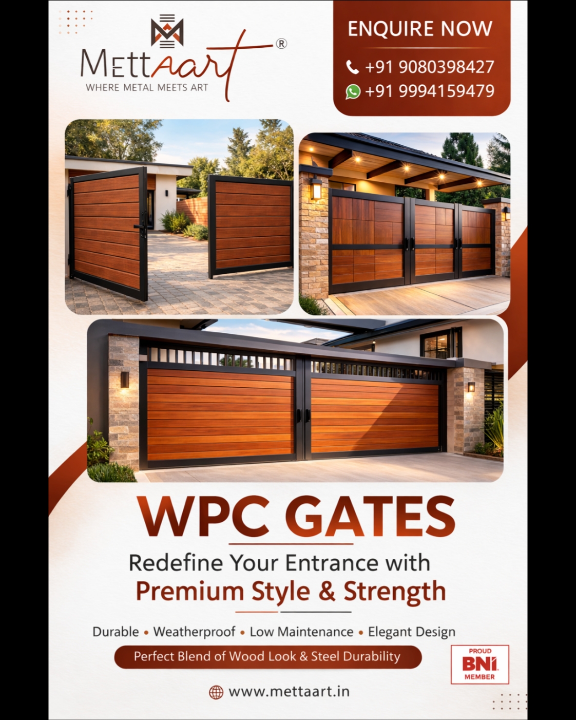 Upgrade your property entrance with premium WPC gates by METTAART in Coimbatore. Designed with the natural beauty of wood and the structural strength of steel, our WPC gates provide durability, weather resistance, low maintenance, and elegant modern design. Ideal for modern homes, villas, and commercial entrances, METTAART gates deliver long-lasting performance and premium aesthetics.