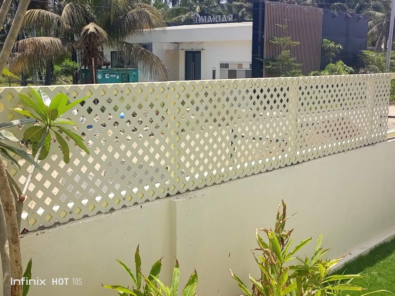 Ongoing installation of PVC lattice sheets for boundary screening. The design delivers a clean and modern look while allowing natural airflow and partial visibility. Made from lightweight, weather-resistant PVC, this solution is durable, low maintenance, and ideal for enhancing residential and commercial exteriors.