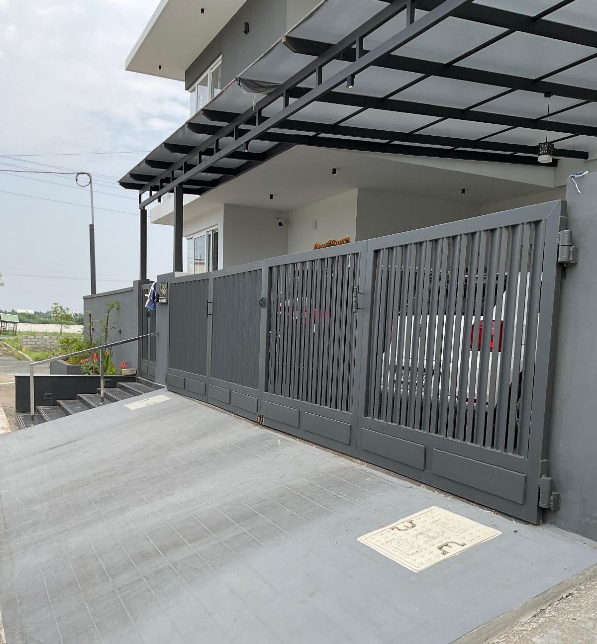 Pattern below. Protection above. Perfect harmony. 💚 METTAART -Laser-cut MS pergola with embossed green polycarbonate roofing above, combining decorative detailing with weather protection and filtered natural light. Modern, durable, and architecturally refined.